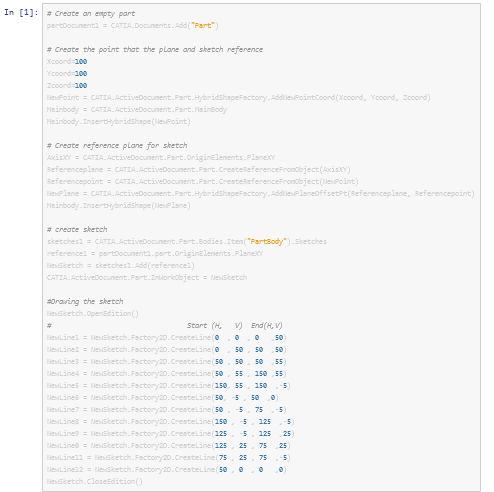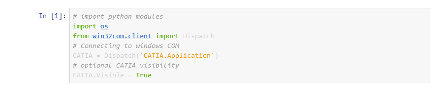 اولین عملیات پایتون وارد کردن ماژول های مورد استفاده است. سپس پایتون تلاش می کند به برنامه CATIA در حال اجرا در ویندوز متصل شود.